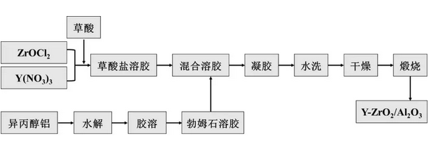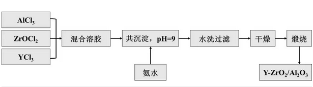 溶膠-凝膠法是指有機或者無機的鋯(鋁)鹽在溶液中均勻混合,然后經(jīng)歷水解、聚合反應會生成透明的溶膠體系,所得溶膠經(jīng)過老化、聚合形成凝膠,最后凝膠經(jīng)過干燥、鍛燒等步驟得到ZrO2/Al2O3納米復合粉體,這種方式可以使ZrO2在Al2O3中達到良好的分散。