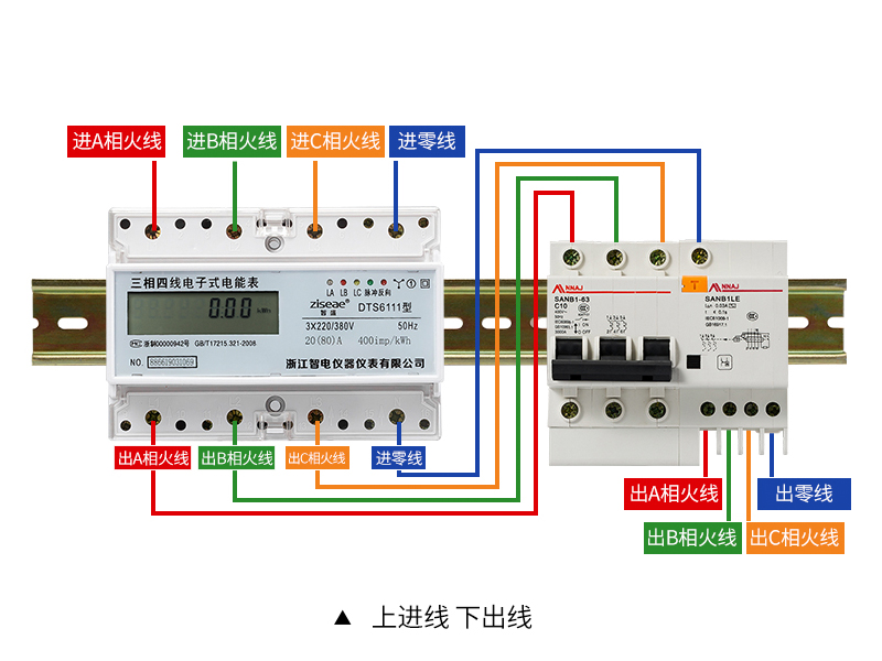 三相四線制,在低壓配電網中,輸電線路一般采用三相四線制,其中三條線路分別代表A,B,C三相,另一條是中性線N或PEN電源側的中性點接地,則中性線也稱為零線(老式叫法,應逐漸避免,改稱PEN,如果不接地,則從嚴格意義上來說,中性線不能稱為零線)。在進入用戶的單相輸電線路中,有兩條線,一條我們稱為相線L,另一條我們稱為中線N,中線正常情況下要通過電流以構成單相線路中電流的回路。而三相系統中,三相平衡時,中性線(零線)是無電流的,故稱三相四線制;在380V低壓配電網中為了從380V線間電壓中獲得220V相間電壓而設N線,有的場合也可以用來進行零序電流檢測,以便進行三相供電平衡的監控。三相導軌式電表的接線方式有區別老式背掛式電表,具體接線方式如下: