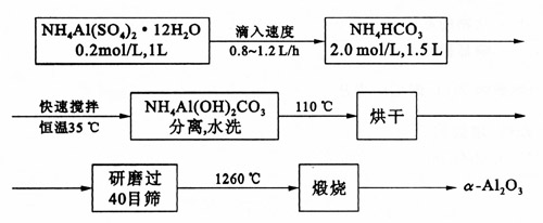 口-A12 03粉末的制備是NH4 HCO,與NH4 Al (S04)2.12HzO合成NH4 AI(OH):CO。,然后經(jīng)1260℃煅燒轉化成口-Al20。其工藝流程如下:
